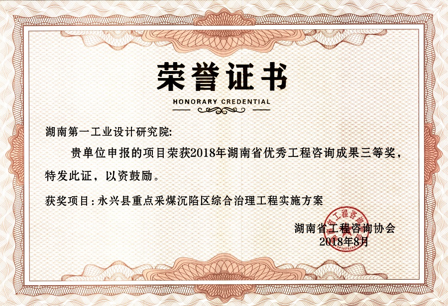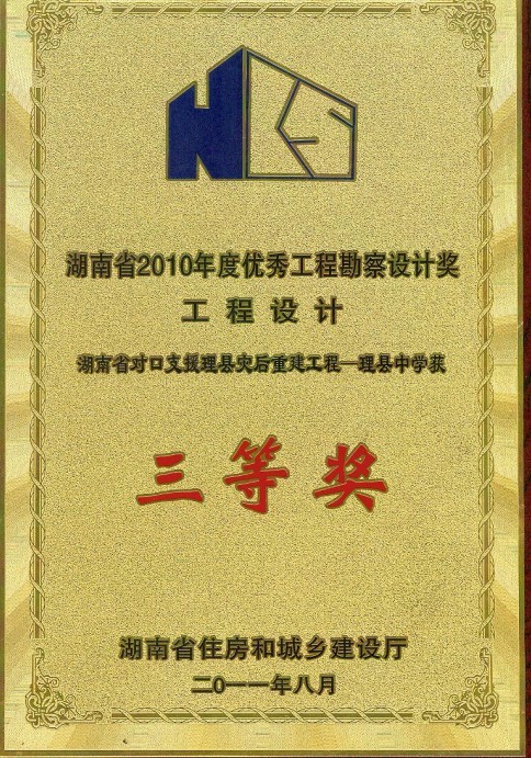 湖南省優(yōu)秀設計表揚金獎(1984)