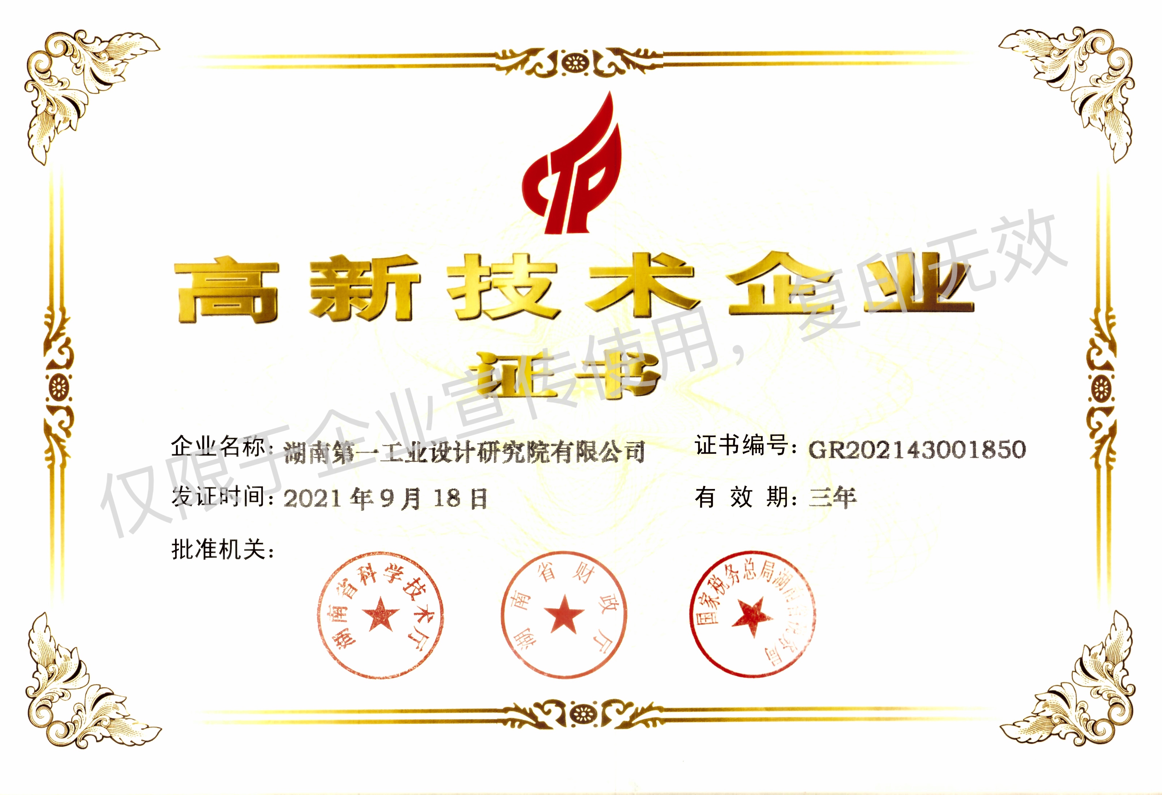高新技術企業(yè)證書